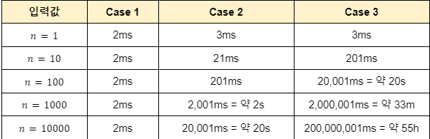 입력값이 작을 때는 그차이가 크지 않았지만, 입력값이 점점 커질 수록 엄청나게 차이가 벌어진다.