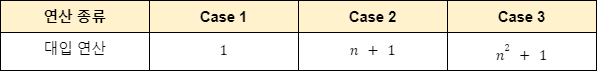 알고리즘을 수행하는 데 필요한 연산이 몇 번 실행되는지 숫자로 표기한다.