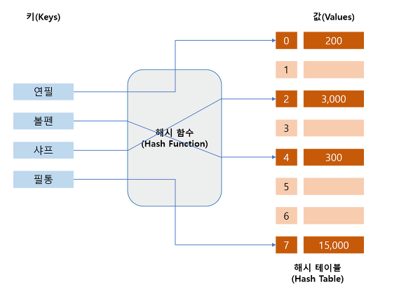 ● 해싱(hashing) : 입력의 크기에 상관 없이 일정 크기의 값으로 변환하는 것. 이에 사용되는 함수를 해시 함수(hash funtion)라 한다.