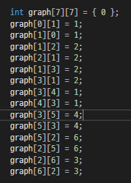 정점이 N개 있을 경우 N x N 크기의 2차원 배열로 그래프를 표현할 수 있다. 배열의 원소는 간선의 가중치를 나타내게 된다. 가령 edges[i][j] 는 정점 i 에서 j로 가는 간선을 나타낸 것이다. 2차원 배열을 사용하기 때문에 그래프에 간선이 적다면* 그만큼 메모리를 낭비하게 된다.
