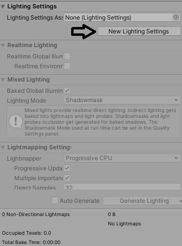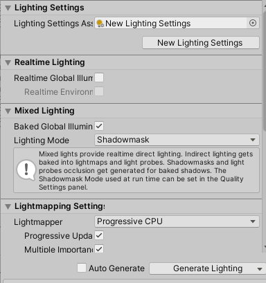 리얼타임 라이팅 부분을 체크를하고 Generate Lighting을 누르면 Auto Generagte 해체하고 Generate Lighting을 누르면